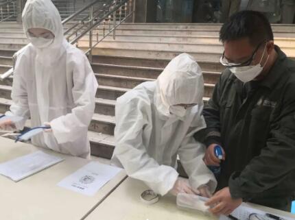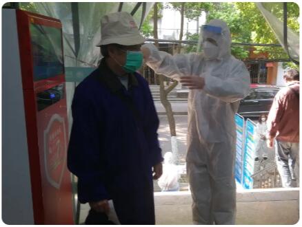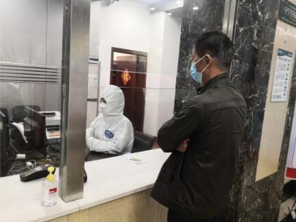 吴家山供电所在厅外安排四名工作人员负责引导工作:两个人负责登记测温查验健康码等措施,两人负责引流,确保用户与用户间留出足够安全距离。厅内安排三名工作人员:两人在业务窗口处理用户具体用电需求,一人引导在消杀机进行全身消毒。