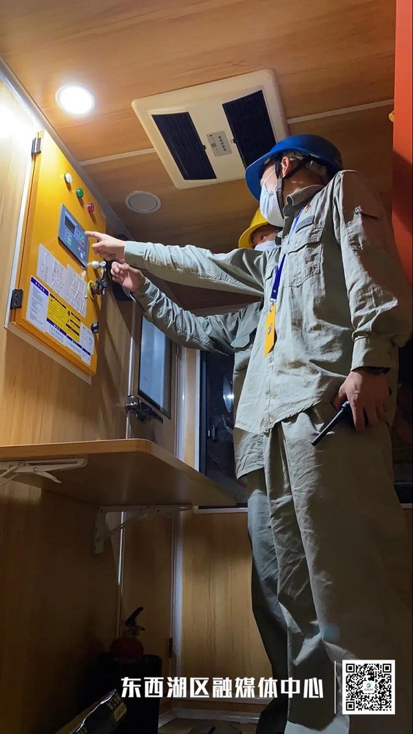 “我们采用的是与军运会开幕式一样的‘孤岛运行方式’,以闭环管理为原则,保证供电不受外力影响。“东西湖区供电公司营销部邱俊介绍,码头潭文化遗址公园原设一处变压器,为保障活动安全顺利展开,公司共调度了4台发电机、4台发电机车到场,在原有变压器旁连接发电机车,主舞台的2台发电机互为备用电源,可以保证无缝对接不断电。除此之外,公园外环沿线还临时架设了60盏照明灯,确保园区内“全时段闪亮”。