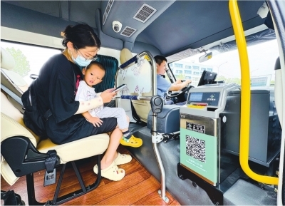 9日,一位妈妈带着孩子乘坐微公交1路前往地铁站。长江日报记者陶常宁 摄