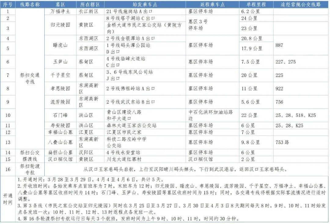 同时,市民之家公交站至归元陵园专线已启动,3月25日—27日,3月30日—4月3日,每天8时、9时、10时、11时始发点各发班一次;10时、11时、12时、13时返程点各发班一次。上述各交通专线运营时间和班次将根据实际客流情况进行适时合理调整。