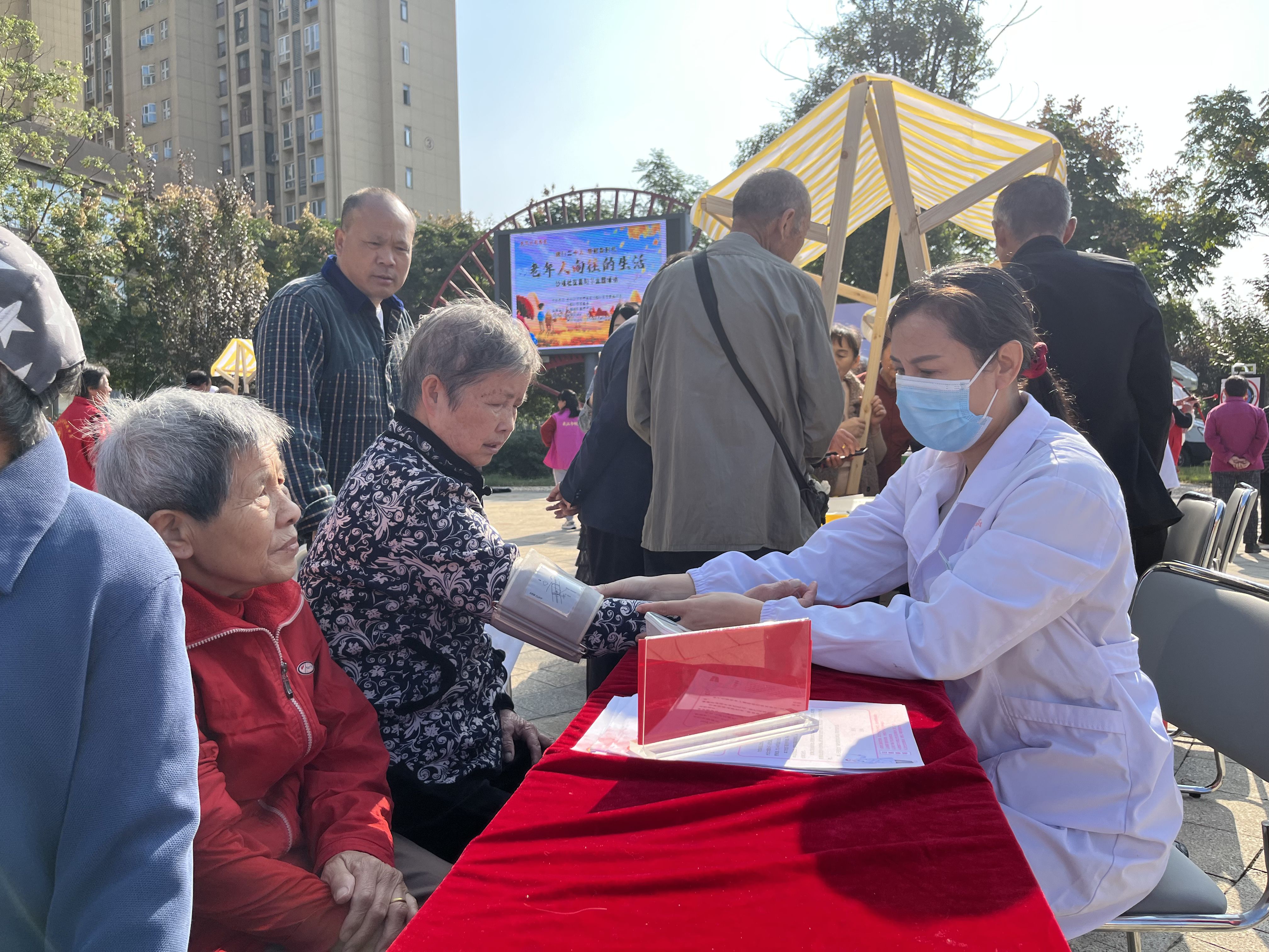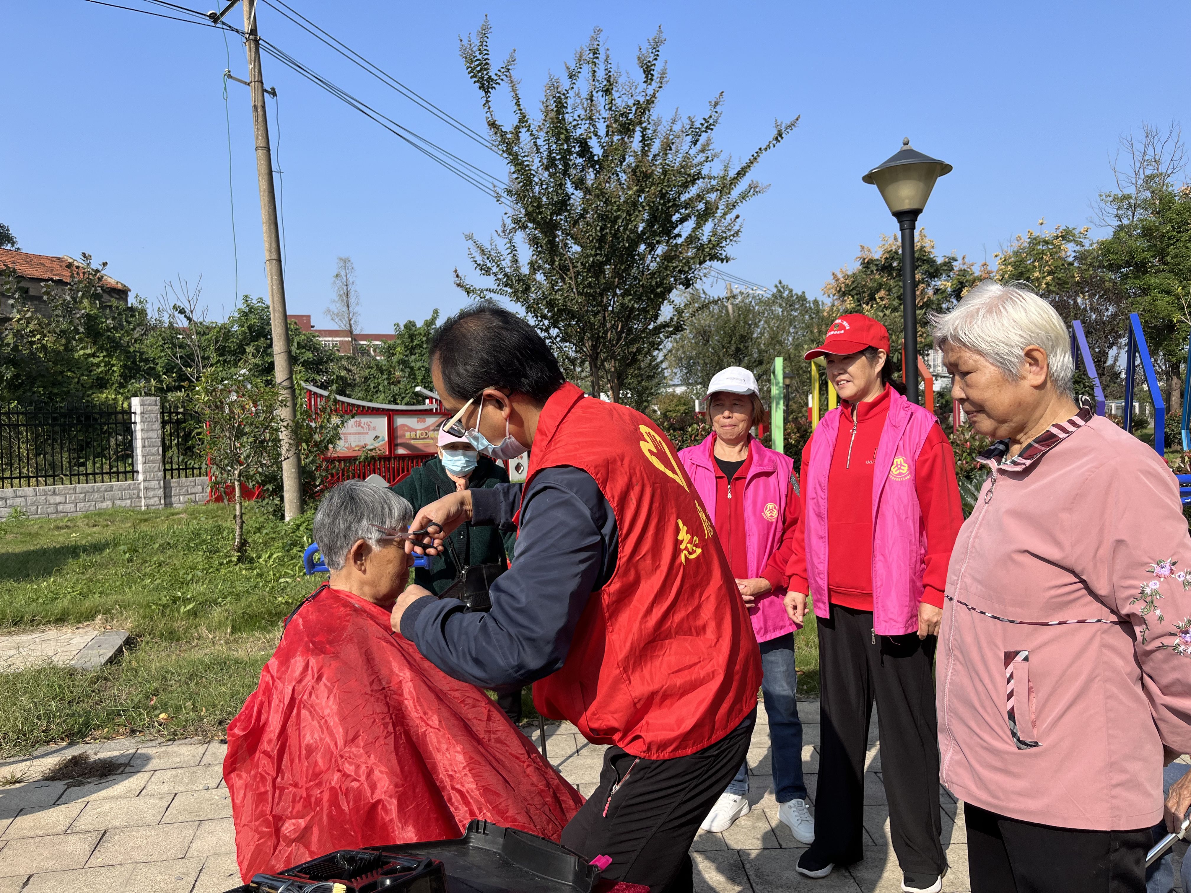 热闹的小广场上气氛热烈,医护人员为社区老人进行血糖、血压测量,耐心解答各种健康问题,有针对性地给予健康指导。志愿者现场义剪,让老人们显得更精神。