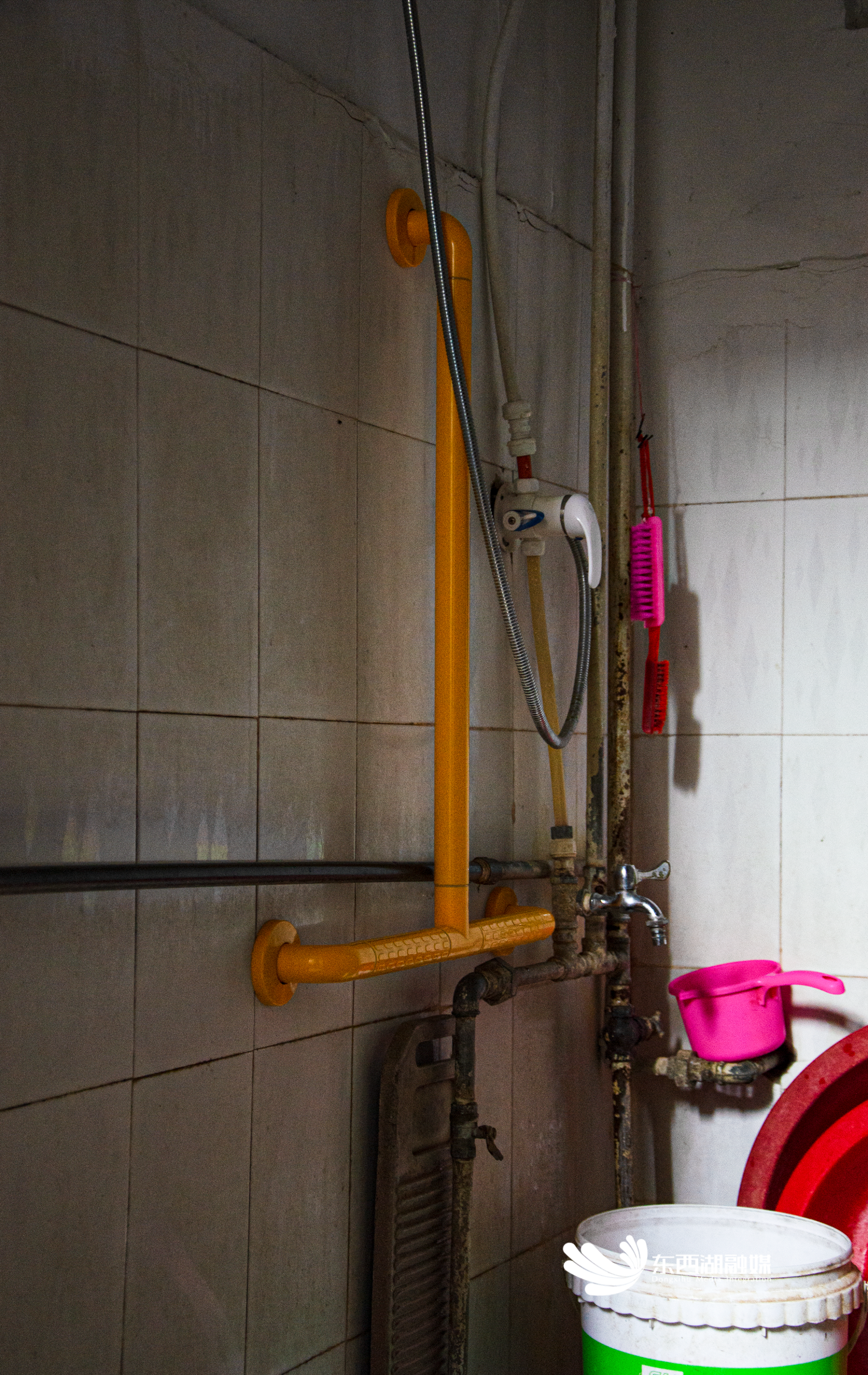 在黄友梅家中,连接一楼和二楼的阶梯,不仅陡峭,每到晚上灯光昏暗,半夜通行稍不留神容易摔倒。如今,楼梯间配上自动感应灯具,沿墙安装了5.5米的扶手,表面还做了易于抓握的凹槽设计。在卫生间,2.2平方米的防滑垫铺满地面,为了便于老人站立,沿墙也装上了倒T型扶手。