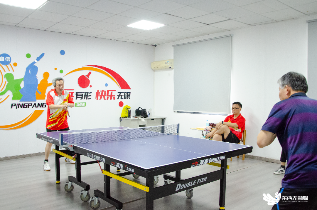 在五楼的乒乓球运动室,居民张恩宁正和一帮朋友们切磋球技。“这里挺好的,环境舒适,乒乓球桌在空调房里面,有时还能碰到社区提供的绿豆汤和西瓜。”
