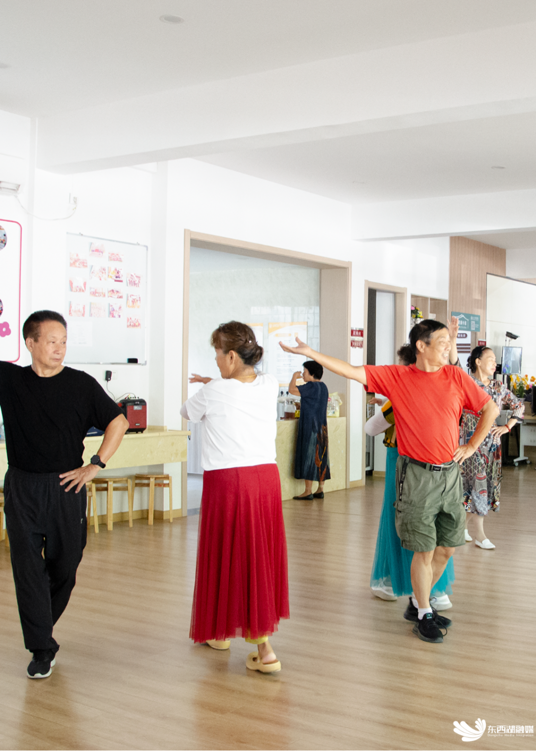 有了纳凉点的助攻,高温也抵挡不住老年人热爱生活的脚步。舞蹈室里,两支舞蹈队排练得不亦乐乎;书法室里,有家长带着小朋友在写暑假作业;老年人服务中心还有近500平方米的室外空间,种的花花草草在暴晒下容易萎蔫,每天来纳凉点的居民还会自发给花园浇水。