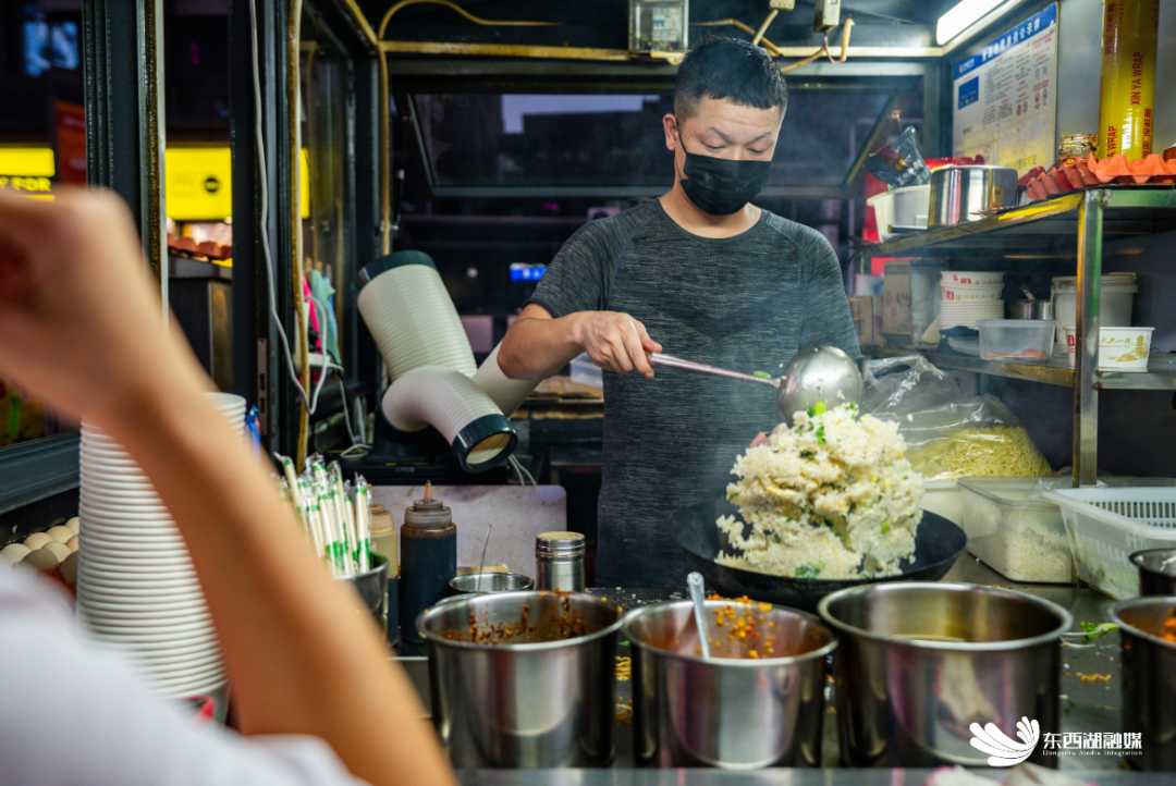 此外,商业街还定期举办跳蚤市场,吉他弹唱、非遗糖画、手工剪纸等摊位穿插其间,食客在等待小吃的间隙,可驻足观看或参与互动,让“逛吃”更添文化趣味。