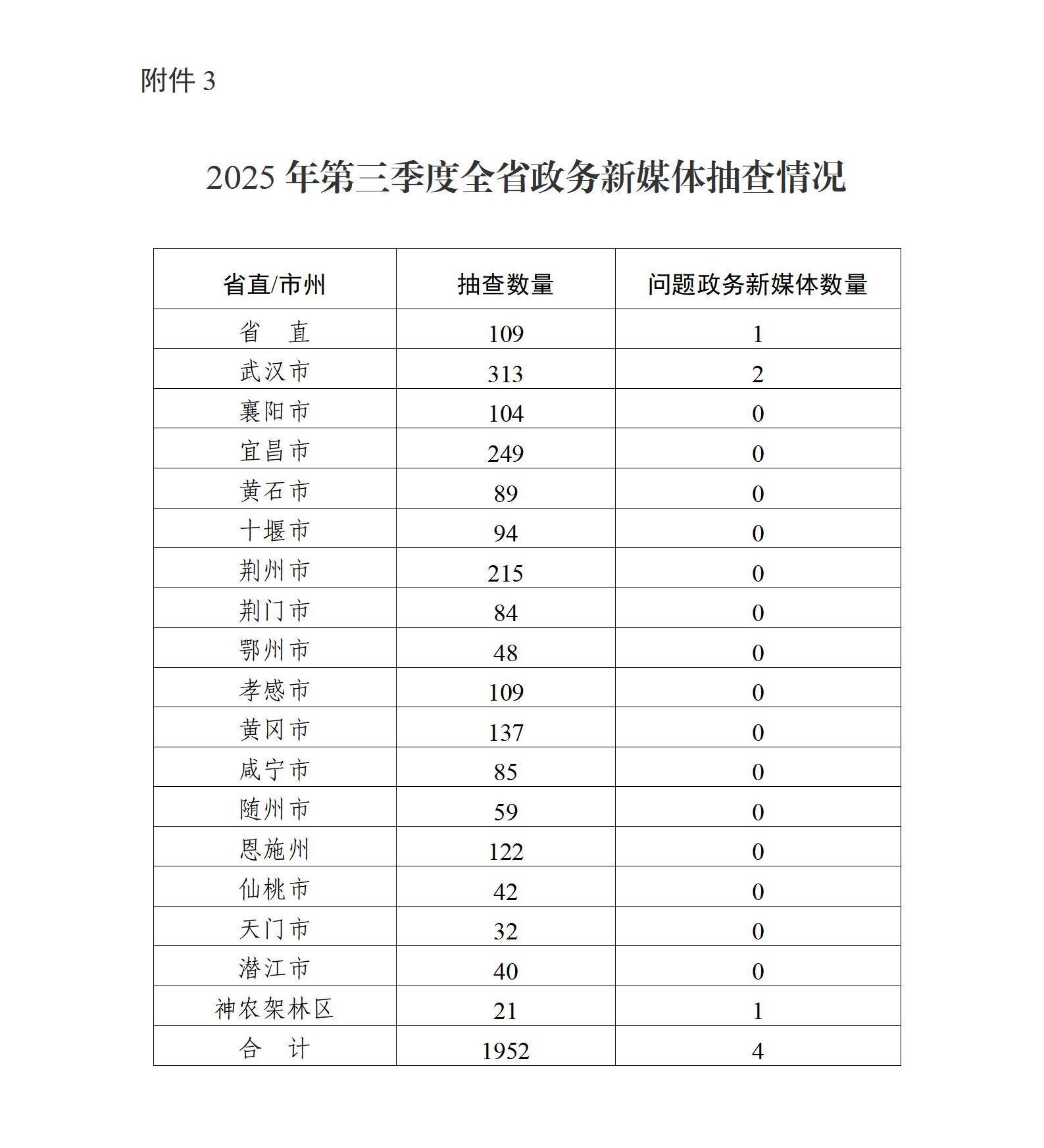根据国务院办公厅有关政府网站和政务新媒体监管工作要求,省政府办公厅组织开展了2025年第三季度全省政府网站和政务新媒体抽查。现将有关情况通报如下: