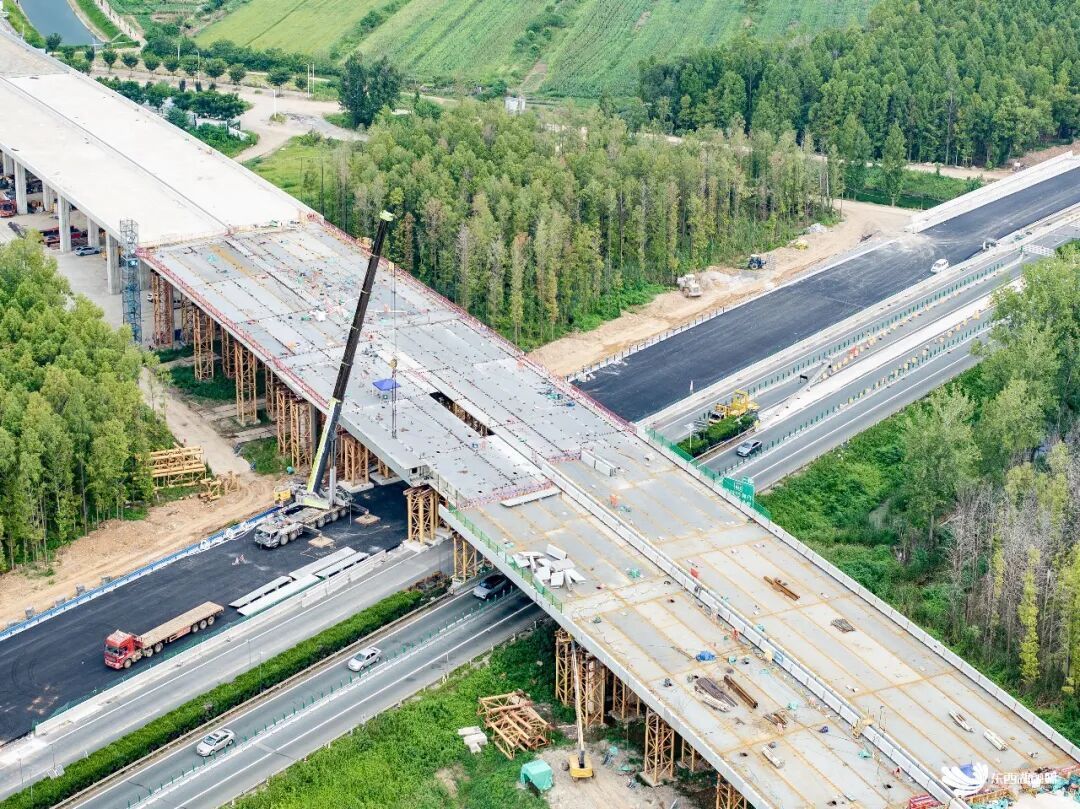 作为金山大道西延线二期的关键控制性工程,跨京港澳高速桥的施工堪称整个项目的“点睛之笔”。这座全长855米的桥梁,需跨越车流如织的京港澳高速,施工难度与技术要求极高,对建设者而言,无疑是一场在“动脉血管”上进行的精细手术。