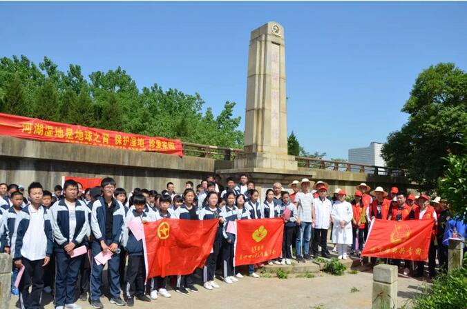 ▲学校师生积极参加将军路街保护湿地清洁家园活动