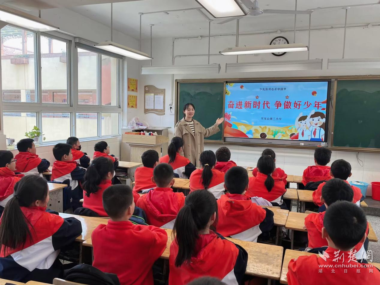 荆楚网(湖北日报网)讯(记者齐一璇 通讯员万晟、刘腾)“清明,是传承红色基因的好时机,同学们慎终追远、缅怀先辈,继承先烈遗志,在潜移默化中树立远大志向,培育美好心灵,不断增强爱党爱国爱社会主义情感,立志为实现中华民族伟大复兴的中国梦努力学习、健康成长。”武汉市东西湖区吴家山第三小学校长王幸峰向记者介绍,在清明节这样一个意义深远的日子,为引导少先队员们学习党史,了解中华民族的革命历史和自强不息的伟大民族精神,激发他们树立民族自豪感和历史责任感,全面提升少先队员的国家意识和爱国爱党情怀,武汉市东西湖区吴家山第三小学少先队大队组织开展以“铭记先烈遗志 赓续红色血脉”为主题的系列活动。