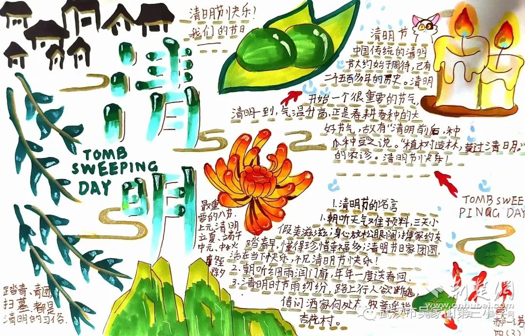 学校开展以“我们的节日——清明”为主题的手抄报绘制活动;开展以“缅怀革命先烈”为主题的黑板报评比活动;开展主题为“故事颂党恩 红色润童心”的清明节讲故事比赛等活动,同学们搜集、了解英雄先辈的光辉事迹,用真挚朴实的语言,饱含深情地讲述着英雄故事,传承英雄精神,亲身体验并感受清明文化。