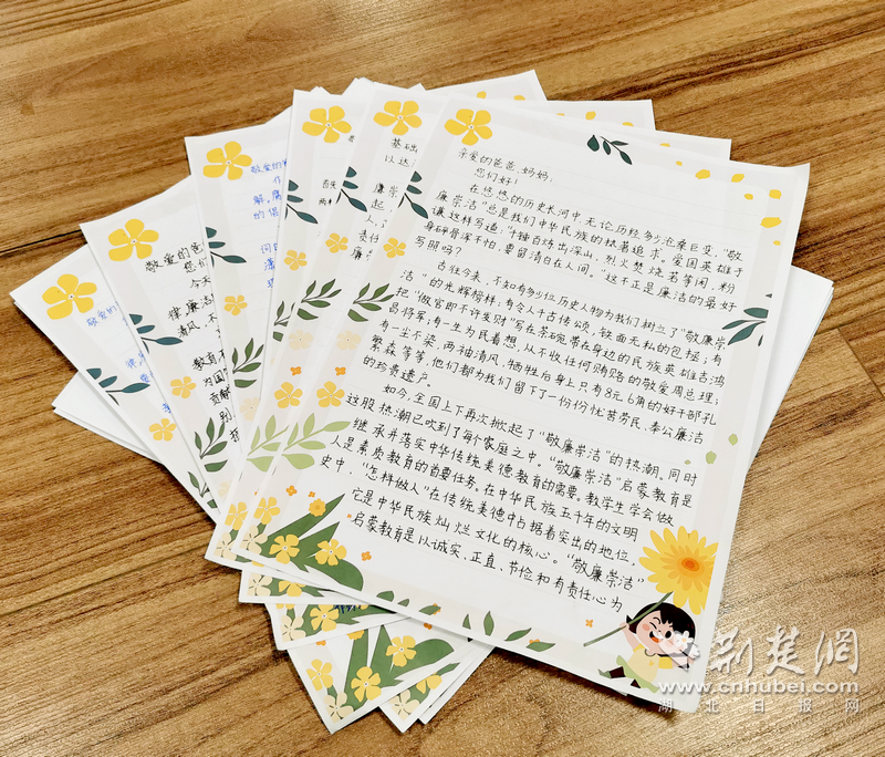 一封封家书,让孩子们化身家庭廉政“小卫士”,爸妈的“廉政监督员”。孩子们用实际行动鼓励父母干净做事业、廉洁做公仆,积极向父母倡导“为民、务实、清廉”的行事准则,让爸爸妈妈们通过孩子的提醒和监督加强崇廉尚洁意识,营造崇廉尚洁社会氛围。