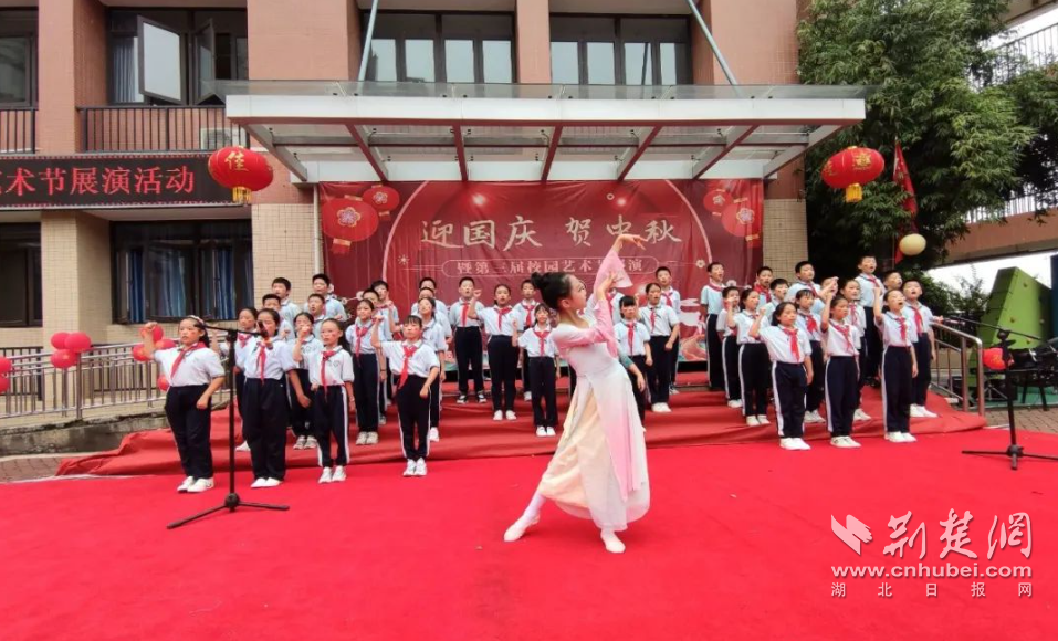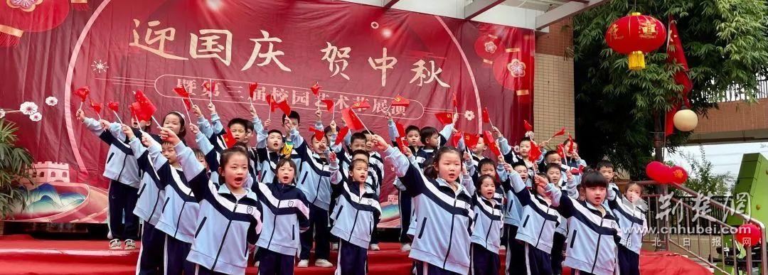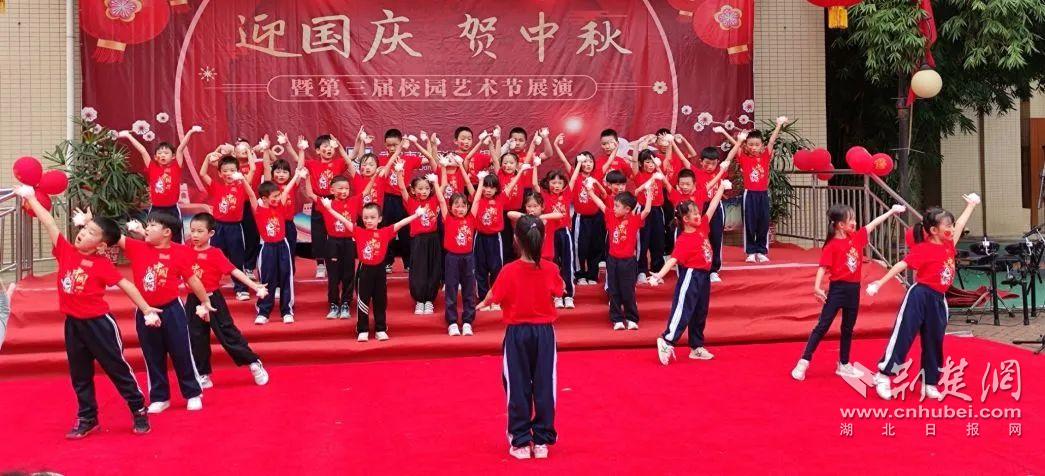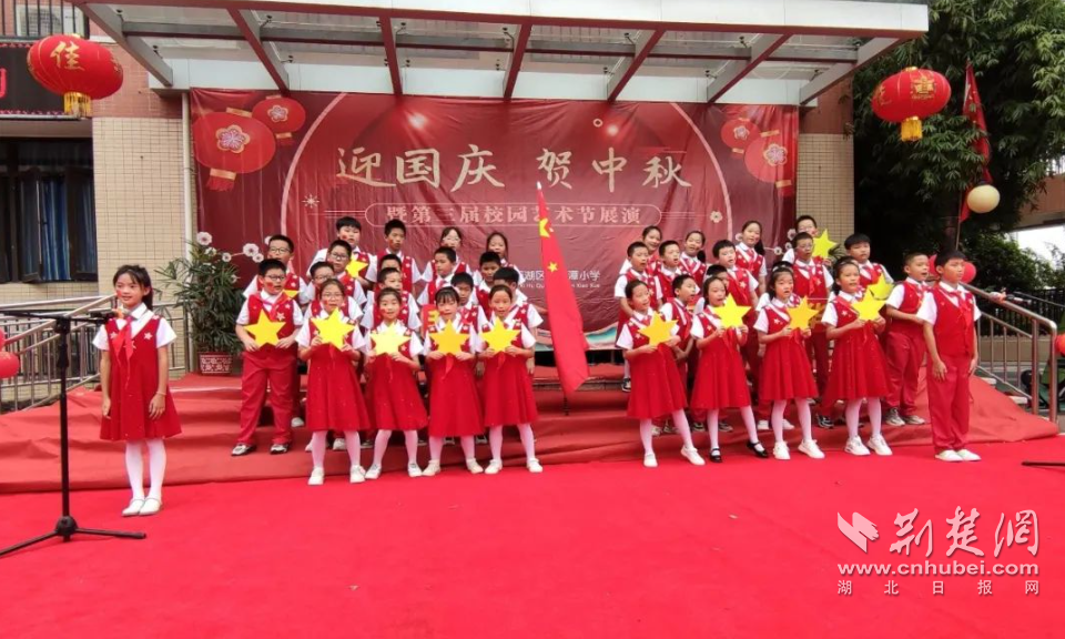 荆楚网(湖北日报网)讯(记者齐一璇、许文秀 通讯员吴菲、袁丹)为庆祝中华人民共和国成立74周年,表达师生爱国情感,唱响时代主旋律,9月28日,武汉市东西湖区金银潭小学开展了迎国庆贺中秋暨第三届校园艺术节展演活动。