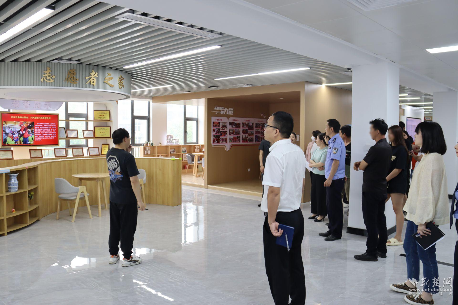 揭牌仪式结束后,工作人员带领全体人员参观基地,详细介绍了基地的建设背景、整体布局,逐一引导大家体验、感受职工书屋、志愿者之家、大众科普区、群众小舞台等区域的功能,提高大家对基地的了解认识。