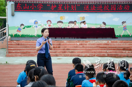 为庆祝“六一”国际儿童节的到来,提升乡村小学青少年的法治素养和自我保护能力。5月31日,东西湖区司法局联合东西湖区人民检察院,来到东山小学为550余名学生开展“‘典’亮校园 法护成长”主题宣传活动。活动还邀请到湖北省人大代表王利、武汉市政协委员阮征共同参与。