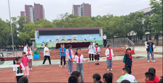 法治课堂结束后,区司法局组织学生们参加法治嘉年华活动。现场选取1—6年级学生代表共18名,分成三组,以团队形式开展角逐。比赛分为普法跳跳乐、名词连连看和普法擂台赛三个环节。普法跳跳乐环节的一分钟跳绳,18名学生轻盈而灵活地脚步在上下翻飞的长绳中自由穿梭,为接下来的法律知识擂台赛环节进行愉快地热身,活动在同学们热烈的加油助威声中拉开帷幕。