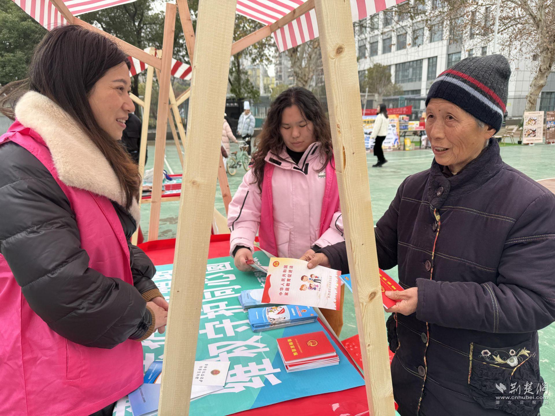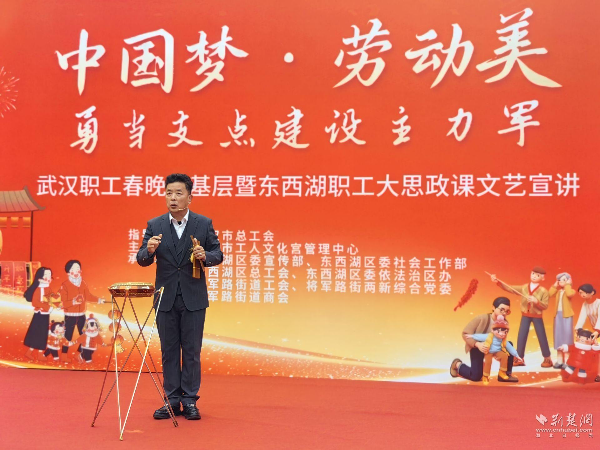 荆楚网(湖北日报网)讯(通讯员罗晶洁 石春康)1月27日下午,东西湖区将军路街道文化广场热闹非凡,“中国梦·劳动美 勇当支点建设主力军”武汉职工春晚进基层暨东西湖职工大思政课文艺宣讲活动热闹举行,以“法治暖新春 平安伴团圆”为主题的东西湖普法集市活动同步火热开展,为辖区居民们送去法治温暖与惠民服务。