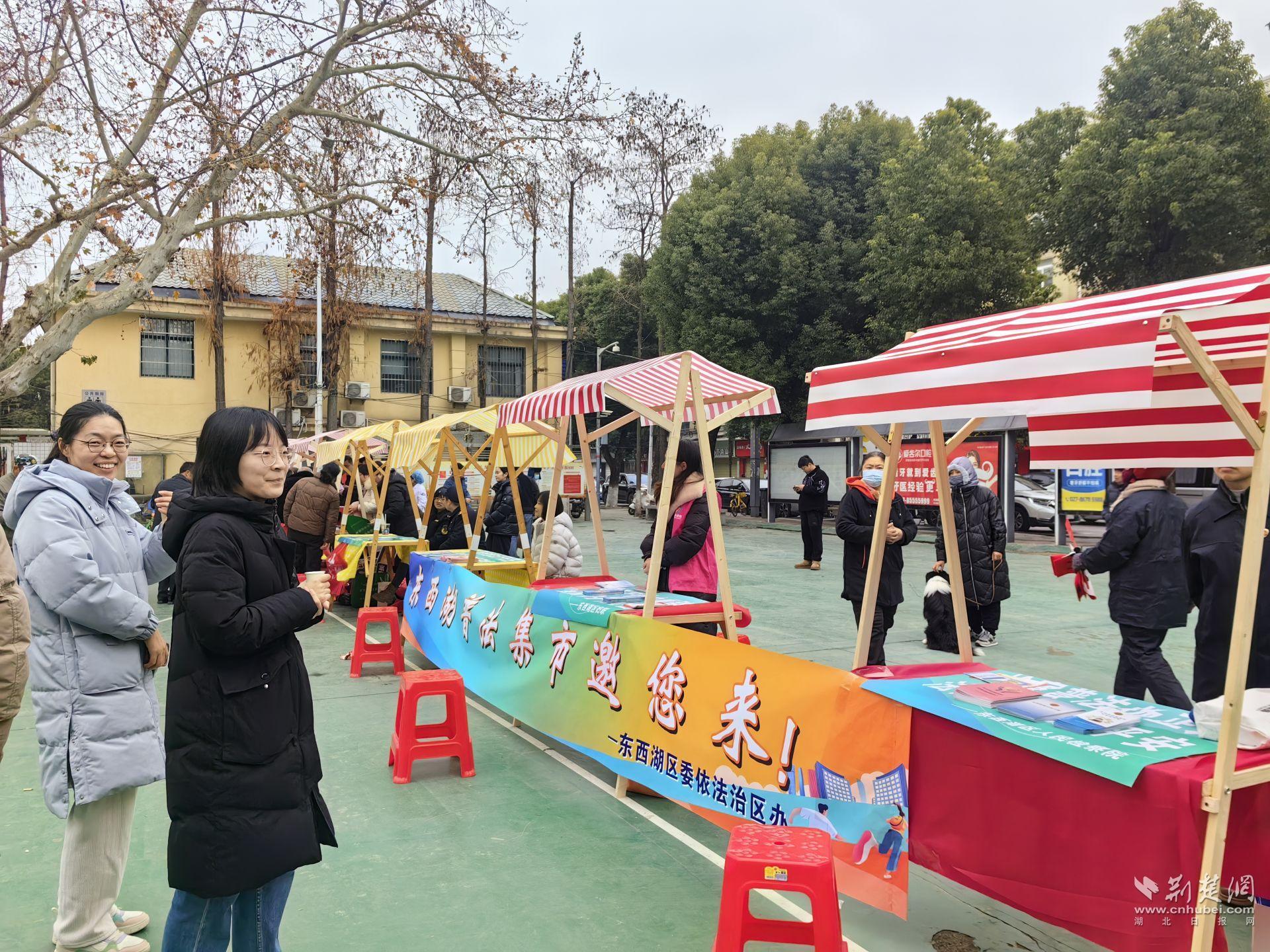 本次普法集市活动由中共东西湖区委全面依法治区委员会办公室主办,区人民检察院、区司法局、区市场监督管理局、区卫生健康局、区医疗保障局、区妇联和将军路街道相关单位共同参与。将军路街道基层职工、将军路商会企业代表、辖区居民共计200余人参与活动。