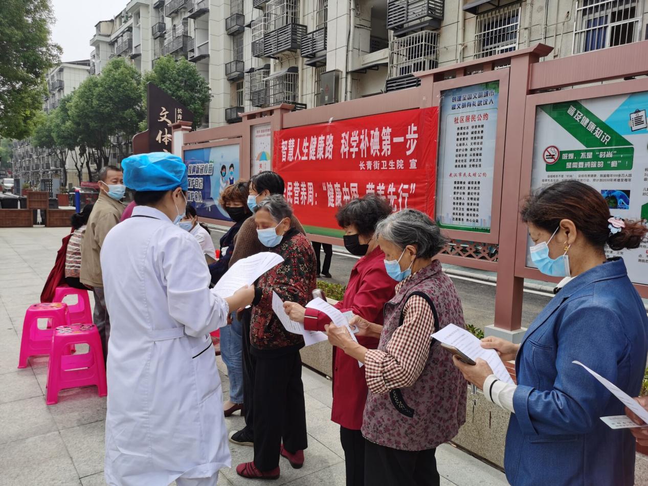 城市,因文明而温暖,文明,因实践而升华。2022年5月15日是我国第29个防治碘缺乏病日,今年的宣传主题是:智慧人生健康路,科学补碘第一步。为倡导文明健康生活方式,持续巩固全国碘缺乏防治工作成果,长青院结合“武汉以我为荣”新时代文明实践活动,提高公众对碘缺乏防治工作的认识,5月13日上午9时,长青院公卫科、内科等四名医护人员前往三民社区开展健康宣传义诊活动。