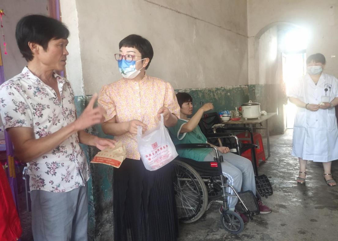2022年6月15日上午,市纪委监委派驻市卫生健康委纪检监察组组长、市卫生健康委党委委员张萍同志(左二)带队在东西湖区调研中深入青锋大队走访慰问困难户。