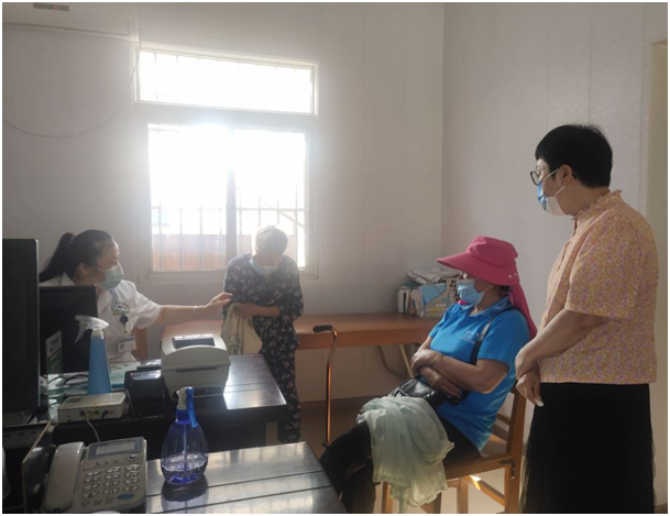 2022年6月15日上午,市纪委监委派驻市卫生健康委纪检监察组组长、市卫生健康委党委委员张萍同志(左二)在走马岭街中心卫生院实地调研,了解居民医保报销政策落实情况、住院患者康复情况、就医体验和满意度。