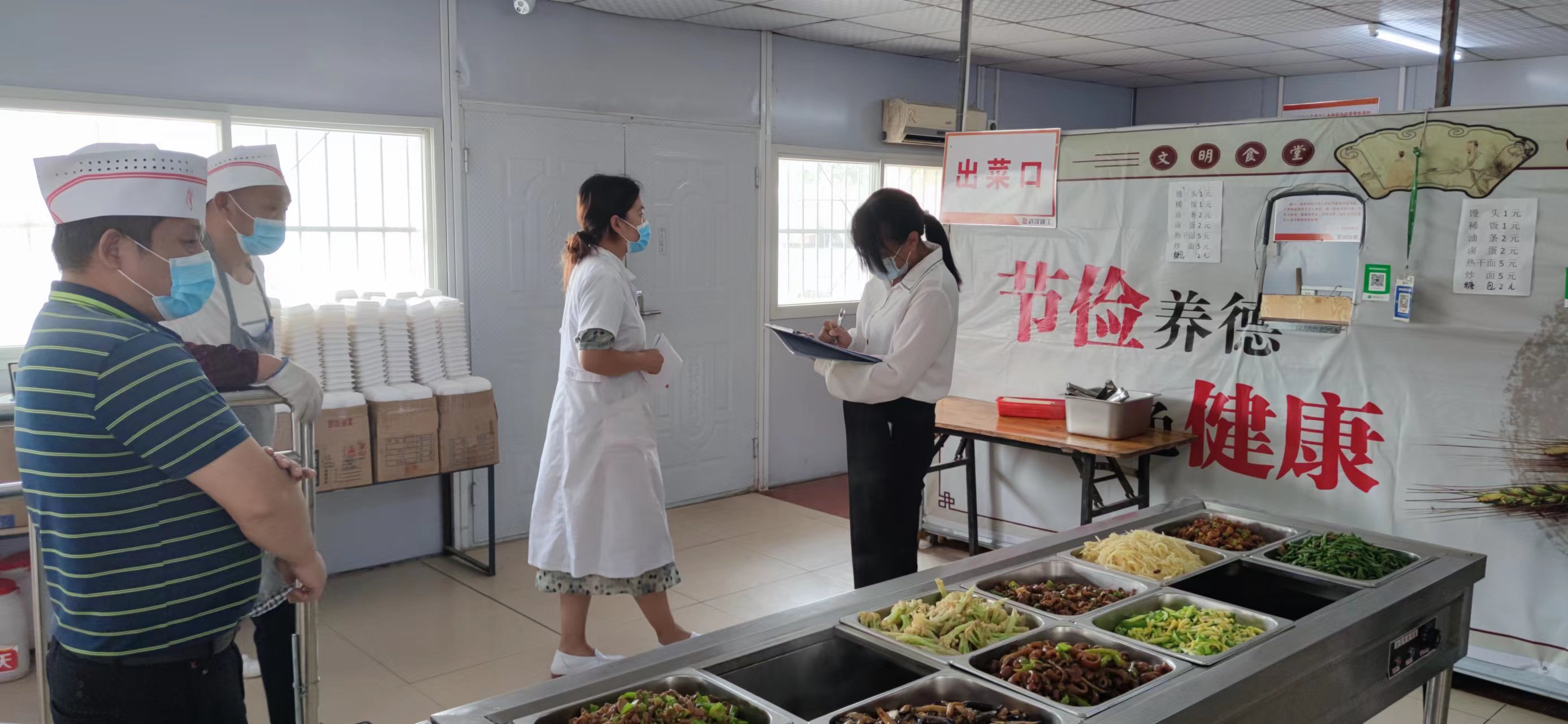 本次食品安全风险排查工作通过现场查看食堂环境,开展现场技术指导、发放宣传资料,工地饮用水水质监测等形式开展。现场主要查看食堂基本情况、食堂环境、食堂“三防”设施配备情况、消毒保洁设施运转情况、生熟食品处理存放情况、食堂工作人员健康情况及是否食品安全、肠道传染病防治相关培训和宣传情况等。