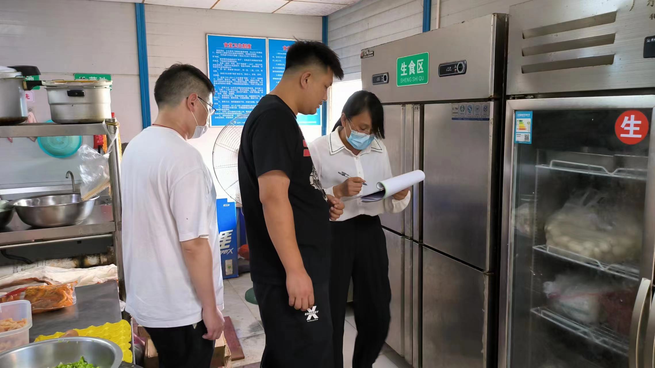 上下联动保健康,东西湖区疾控中心开展工地食堂食品安全风险隐患排查及高温中暑防控工作。6月13日至17日东西湖区疾控中心综合科工作人员联合卫生院工作人员一起对全区11个街道25家工地食堂开展工地食品安全风险隐患排查专项行动及高温中暑防控工作。