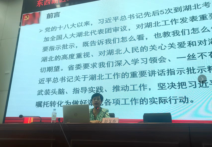 湖北省委党校舒艾香教授为全体党员干部解读《习近平总书记视察湖北武汉重要讲话精神和省第十二次党代会精神》
