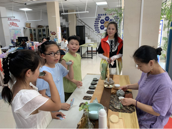 活动核心环节“亲子共创·古巷寻游”,工作人员带领参与者探访社区“八条特色主题巷道”。在“文化导游”志愿者引导下,亲子家庭完成四个打卡点互动任务:从家风家训故事站出发,聆听志愿者讲述柏泉悠久历史,感悟传统家训魅力。在古镇茶馆里,亲手体验柏泉绿茶冲泡技艺,学习传统茶礼,品味文化馨香。在社区公约墙下, 举行亲子家庭宣誓仪式,共同许下建设和谐社区的承诺。在中国邮政储蓄银行柏泉营业所一隅,文化志愿者引导参与者完成柏泉古镇地名拼图,加深对家园的认知与情感,在脑海里留下古镇印象。活动最后完成打卡的家庭集章兑换了特色古巷文创包,文化认同感在互动中悄然生根。