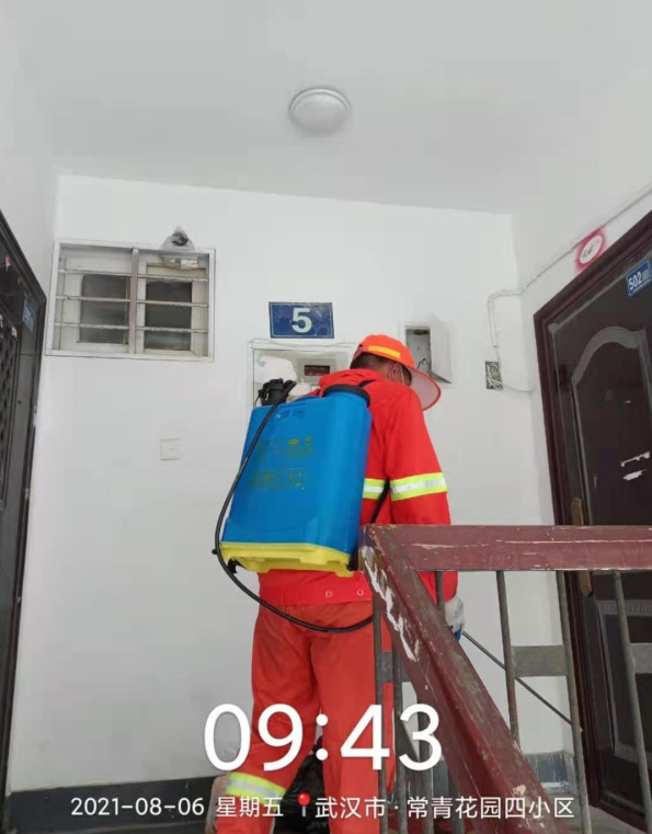 与此同时,四小区聘请专业消杀团队,配备2台消杀车,在小区公共区域进行大面积消杀作业;14名专业人士及物业公司工作人员则手持喷雾设备,针对小区重点楼栋、绿化区域定时开展消杀。