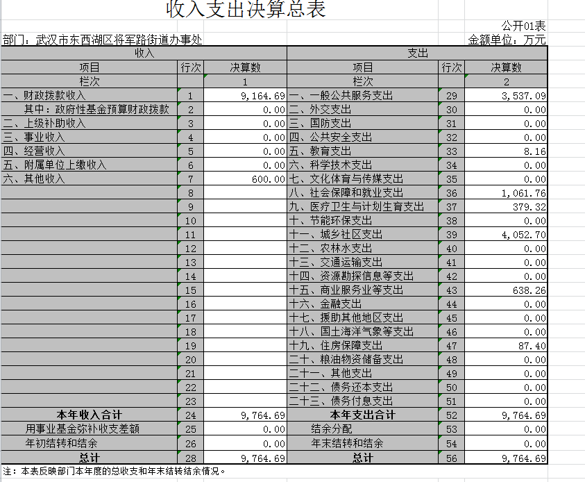 将军路街道办事处2015年度收入总计 9764.69 万元,支出总计 9764.69 万元。与2014年相比,收入减 少24.5%,主要原因见附表 。支出减少 24.5 %。主要原因是 。