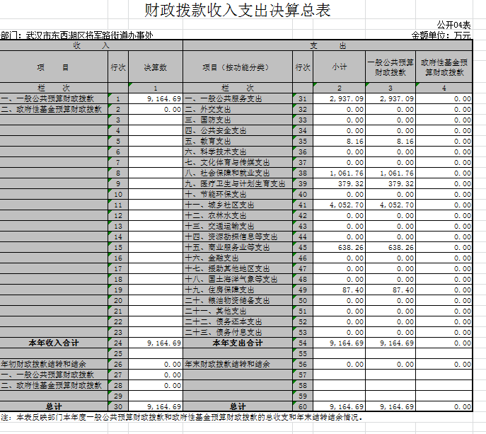 将军路街道办事处2015年度财政拨款(含政府性基金拨款)收支总计 9164.69 万元。与2014年相比,收、支各 (减少) 2992.62 万元,降低24.5 %。主要原因是见上表 。
