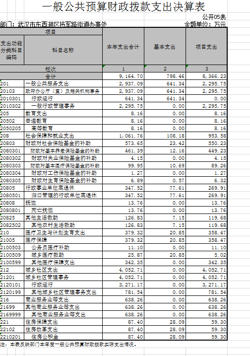 将军路街道办事处2015年一般公共预算财政拨款支出年度预算为10246万元,支出决算为9164.69万元,完成年度预算的92%。其中:基本支出 798.4万元,项目支出 8966.23万元。项目支出主要用于地铁三号线、机场二通道、外部市政工程,马池路、极地海洋公园几个市、区重点项目的征地及拆迁还建工作,配合做好卓尔、玉龙置业、莱特等项目的推进和征地拆迁还建工作,以及还建房四期还建、五期筹建工作。