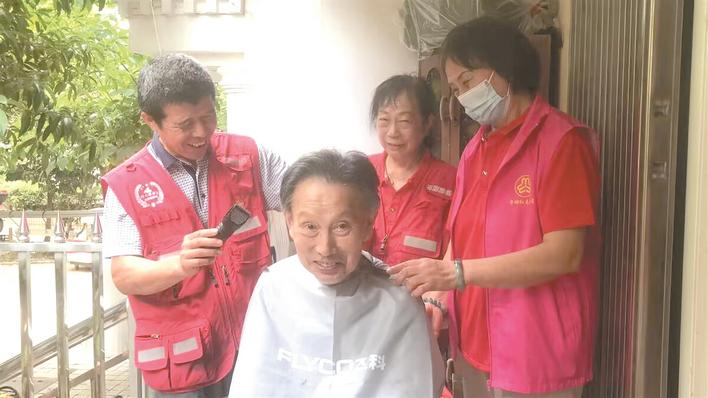 原来,这个社区的一群居民自发组建了一支理发志愿者服务队,3年来坚持免费为居民理发。