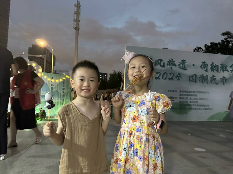 历史与现代交织,传统与个性融合,在夏夜中感受不一样的非遗魅力。为充分发挥商圈联盟“以点带面”的优势,激发辖区居民积极参与社区活动的主动性。7月31日傍晚,东西湖区金银湖街道畔湖社区联合花城社区、金口社区、园博社区,鑫桥社区、金湖社区在园博园北广场开展以“金畔花园”友好商圈联盟为轴心的国潮集市活动,一个个摊位组成了古韵悠悠的雅致夜晚。