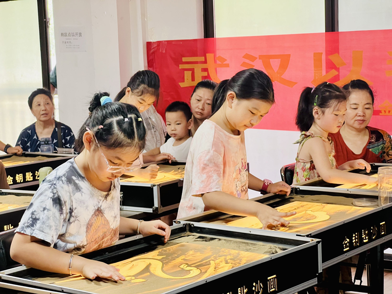 孩子们认真学习沙画。图片来源:长江日报大武汉客户端