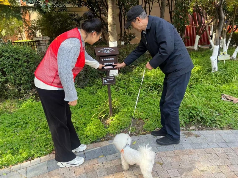 活动同步设立“三方议事微现场”,为居民提供反映养犬相关诉求的渠道,推动问题及时响应。在设施配套方面,小区在主要路段及宠物活动频繁区域增设文明养犬提示牌,配置便便箱,并提供免费的拾便袋和拾便纸,方便居民随时取用,助力宠物粪便及时清理。