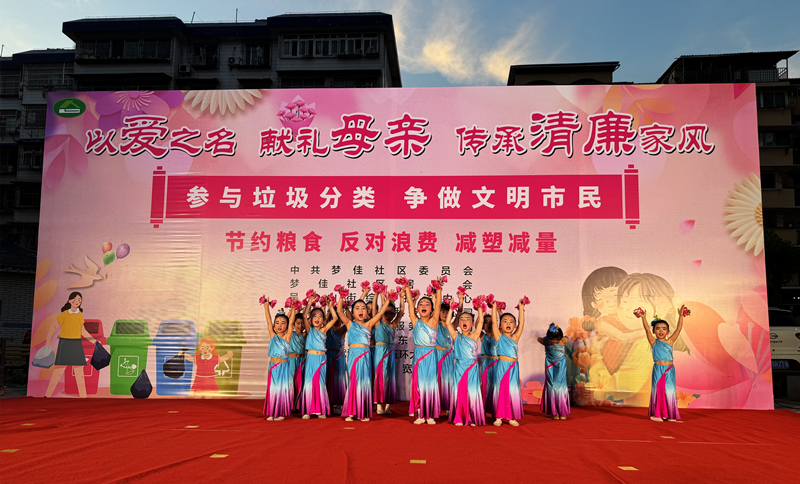 母爱是世界上最无私的情感。演出活动在主持人温馨美好的祝福声中拉开了序幕,小天使幼儿园的孩子们以舞蹈《我们是鲜花》开场,歌曲《女儿情》、快板《夸夸俺们的环卫工》、古筝《洞庭新歌》、舞蹈《缅桂花开多多香》、诗朗诵《垃圾分类让我们的环境更洁美》、湖北大鼓《实现中国式的现代化复兴大中华》等一句句动听的歌声,一支支优美的舞蹈,道出了大家对母亲无限的爱,以廉洁养家风,以家风促党风,共筑风清气正的社区环境。