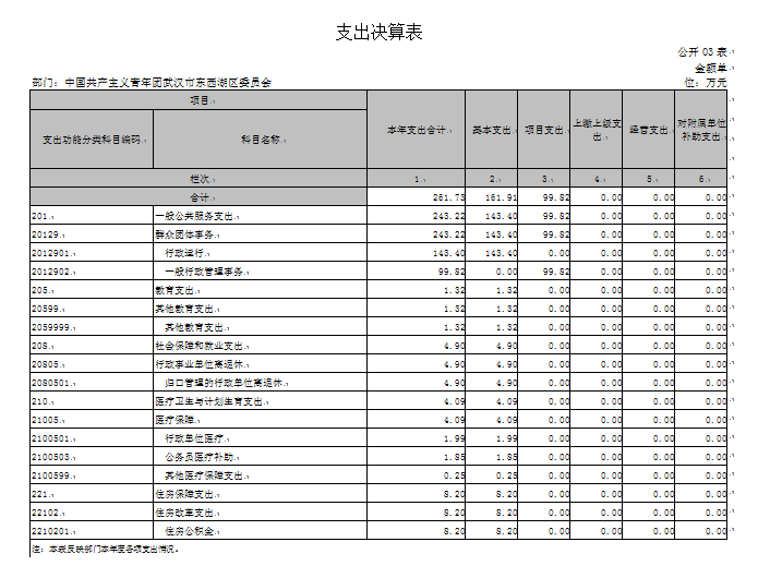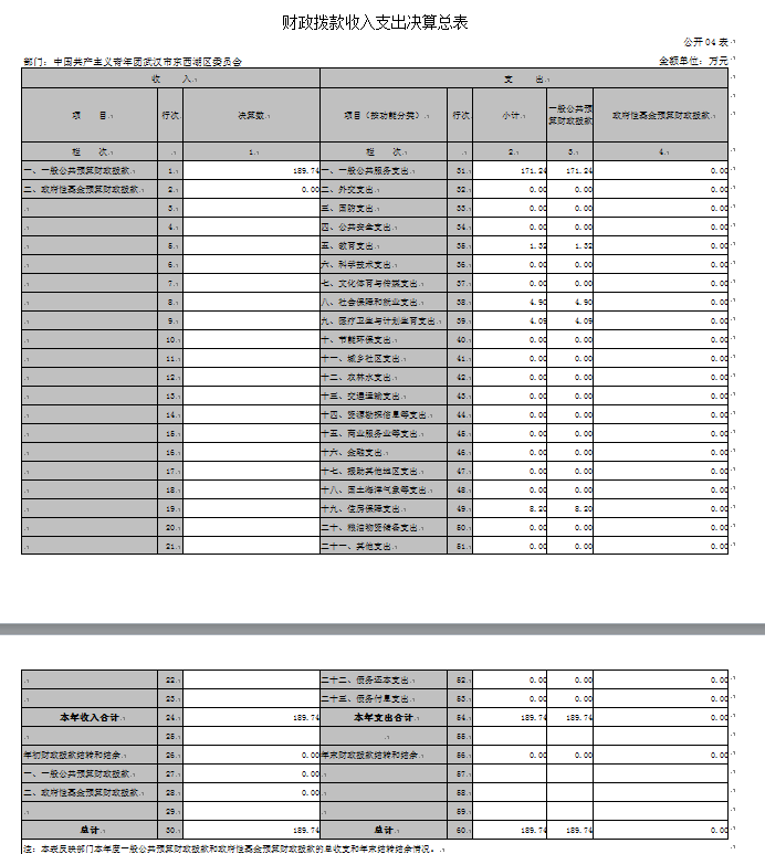 从决算构成单位来看,共青团武汉市东西湖区委员会部门决算由单位本级决算和纳入决算汇编范围的1个下属单位决算组成。其中:行政单位1个、全额拨款事业单位1个。