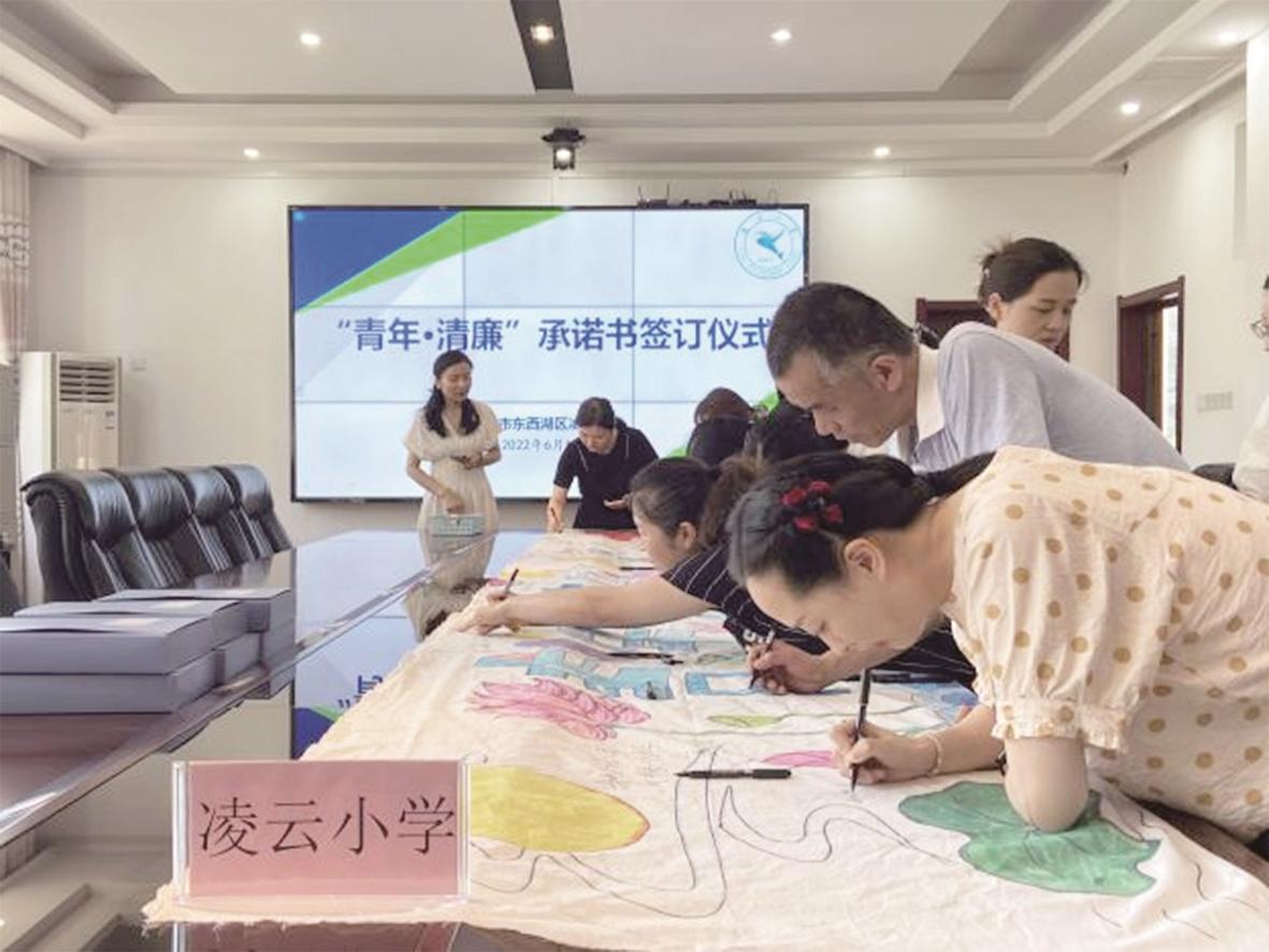 东西湖区凌云小学组织青年教师签订廉洁从业承诺书。