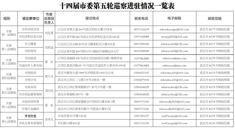根据市委统一部署,十四届市委第五轮巡察对市发改委、市科技局、市经信局、市民政局、市财政局、市商务局、市卫健委、市退役军人事务局、市审计局、市政府国资委、市市场监管局、市医保局、市地方金融局、市机关事务局等14家政府机构党组织开展常规巡察,同步开展选人用人工作专项检查和意识形态工作责任制落实情况专项检查。