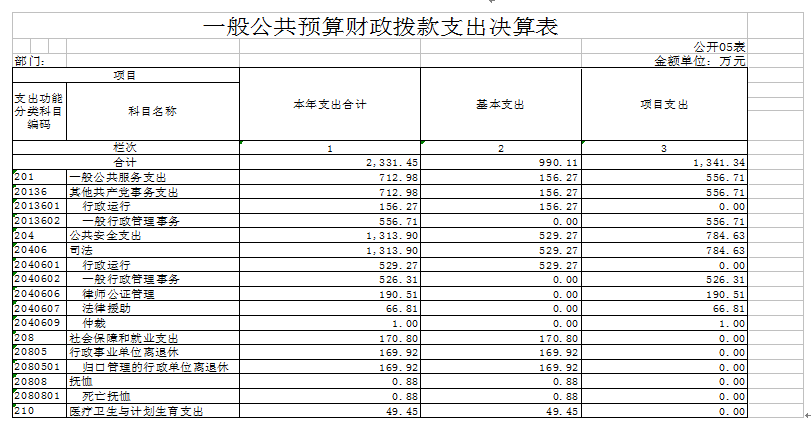 机关运行经费支出。反映行政单位和参照公务员法管理事业单位履行一般行政管理职能、维持机关日常运转所必须的,用公共预算财政拨款开支的费用。包括单位基本支出和一般行政管理项目支出。其中:基本支出包括人员经费和公用经费两个部分。人员经费具体包括工资、津贴及奖金、医疗费、住房补贴等(不包括离退休支出,包括离退休人员管理机构的在职人员支出);公用经费具体包括办公及印刷费、水电费、邮电费、取暖费、交通费、差旅费、会议费、福利费、物业管理费、日常维修费、专用材料费、一般购置费等。一般行政管理项目支出包括出国费、招待费、会议费、办公用房维修租赁、购置费(包括设备、计算机、车辆等)、干部培训费、执法部门办案费、信息网络运行维护费等用于一般行政管理事务方面的项目支出。