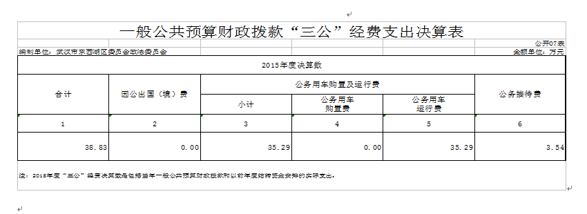 2015年度“三公”经费财政拨款支出决算为38.83万元。
