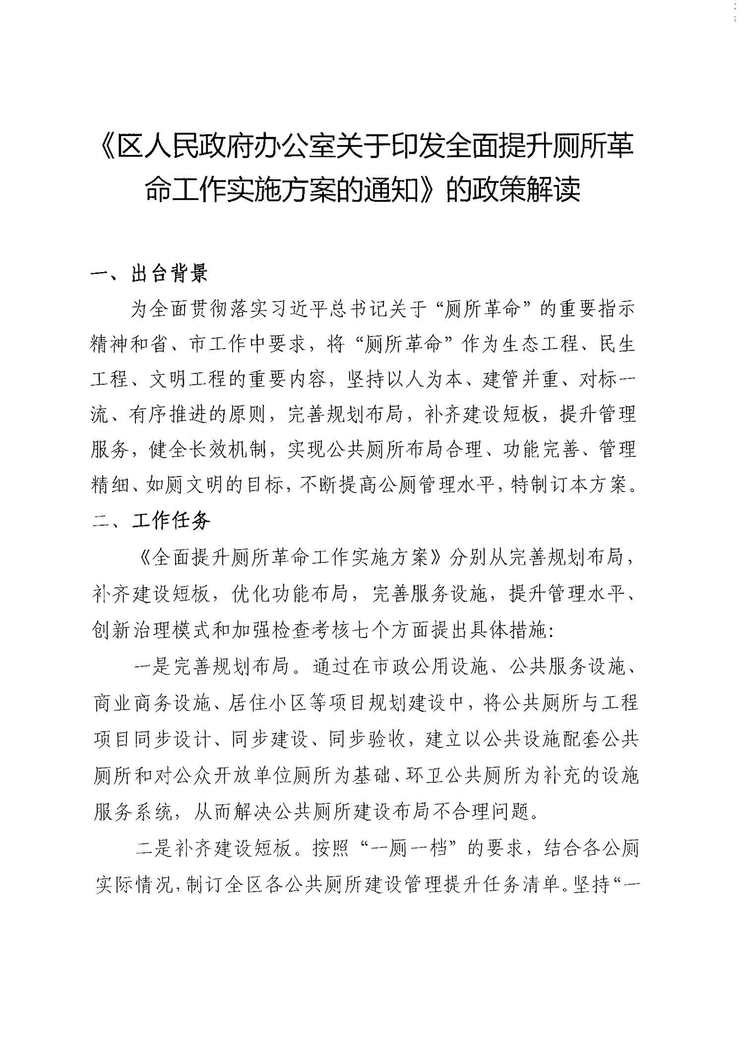《区人民政府办公室关于印发全面提升厕所革命工作实施方案的通知》的政策解读