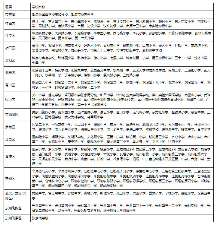 附件:武汉市2021年贯彻落实《义务教育学校管理标准》达标校名单