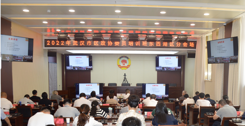 为进一步提升市区政协委员对人民政协的认知,提高委员履职能力,6月14日至6月19日,市政协举办换届后首期政协委员培训班,采取线上视频讲座方式进行。东西湖区设分会场,市政协委员就近在住区属地会场参加培训,全区第十届全体政协委员分三批同步参加学习