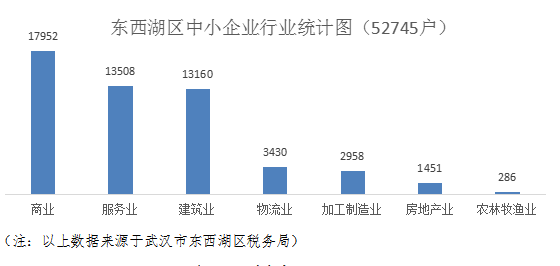 3. 截止2020年9月24日,我区中小企业数量52745户,集中在商业、服务业及建筑业,三个行业共计44620户,占比84.6%,具体数据见下图: